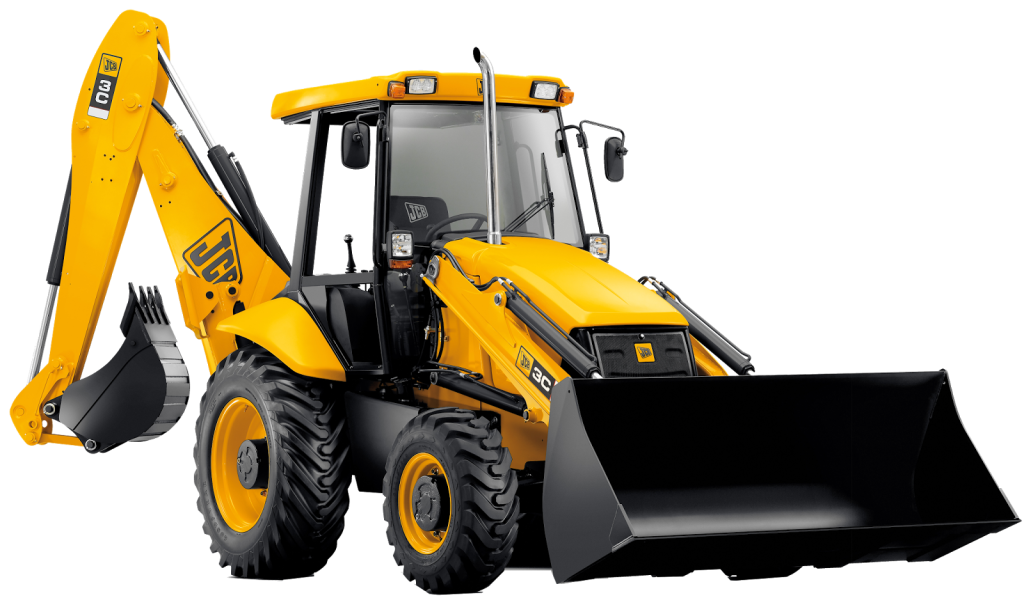 Locação de retroescavadeira com operador para serviços em obra e movimentação de solo.